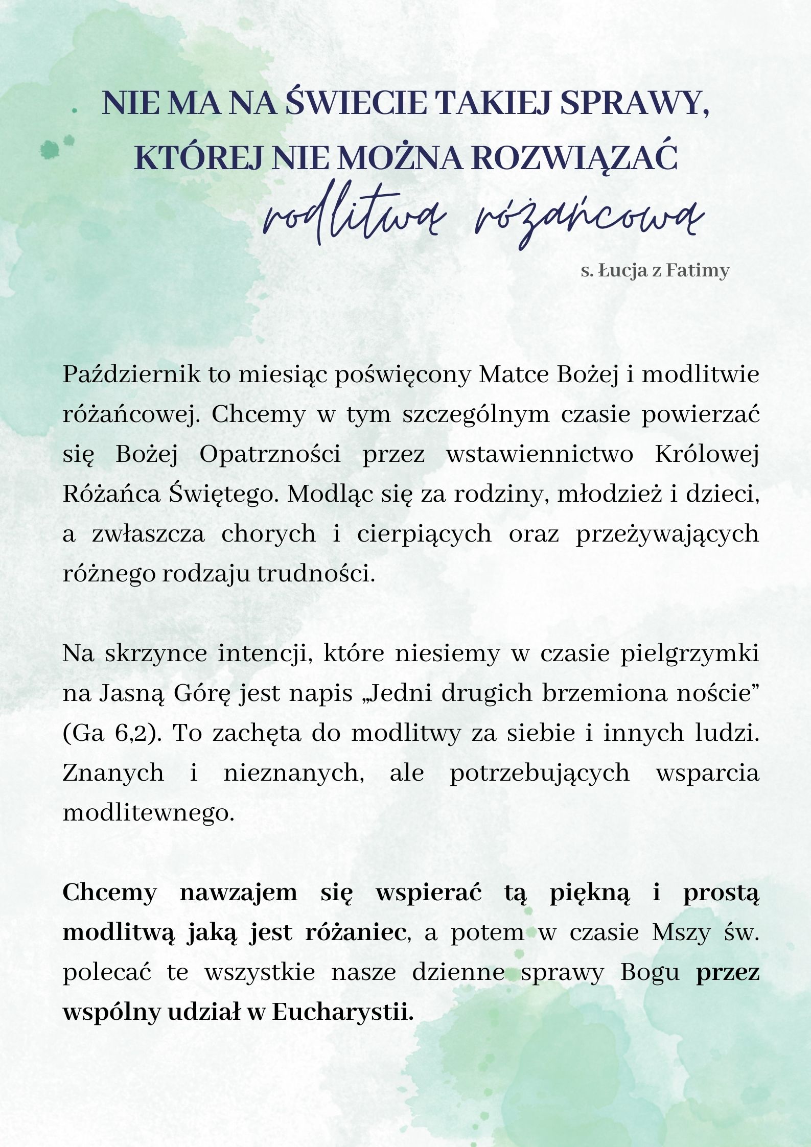 „Przyjdźcie do Mnie wszyscy, którzy utrudzeni i obciążeni jesteście, a Ja was pokrzepię. Weźcie moje jarzmo na siebie i uczcie się ode Mnie, bo jestem cichy i pokorny sercem, a znajdziecie ukojenie dla dusz waszych” (Mt 11,28-29)