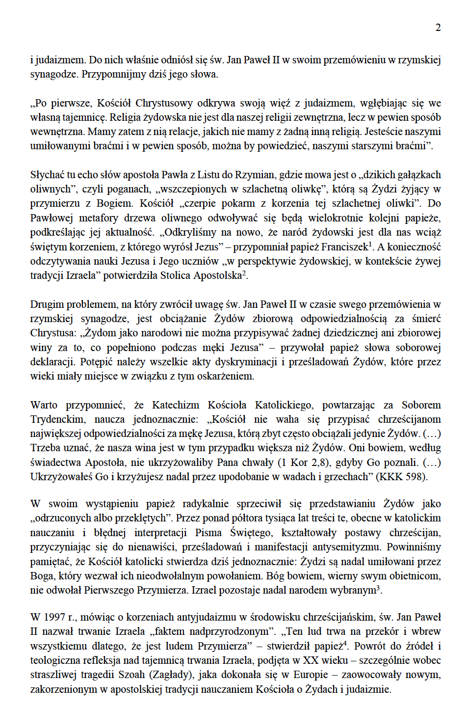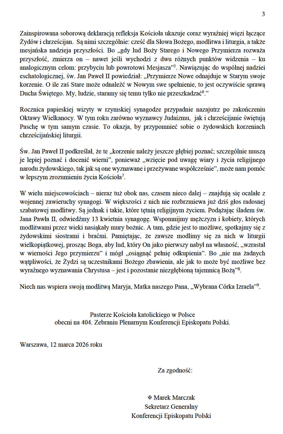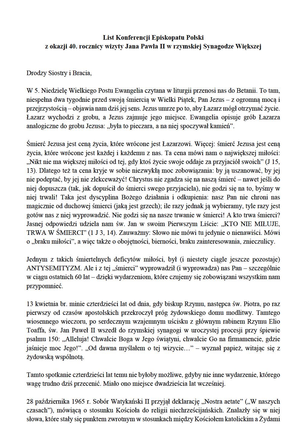 - List KEP z okazji 40. rocznicy wizyty Jana Pawła II w rzymskiej Synagodze Większej na V niedzielę Wielkiego Postu